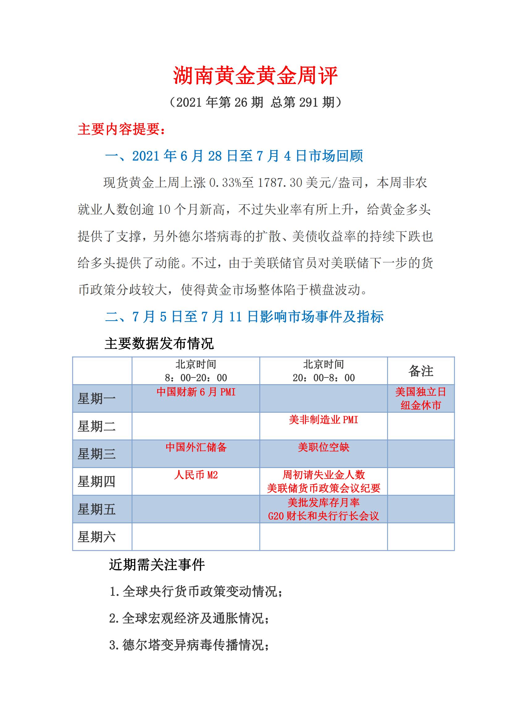 湖南黄金黄金周评(第26期)